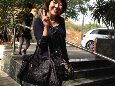 バスから降りました。榊牧師がお持ちのバッグは