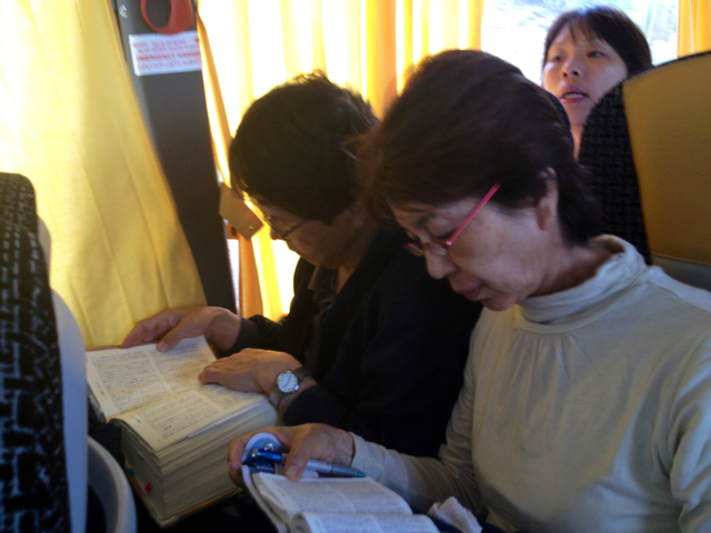 あと35分くらいのドライブです。 聖書を読まれている細川先生ご夫妻。