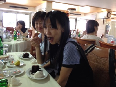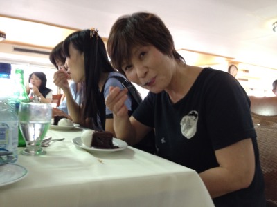美味しそうにたべるお二人。 でもお腹はったー! 何かつまんだ?と、柴橋牧師のツッコミが!(^ ^)