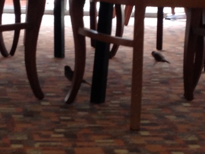 スズメがやってきました。ポテトをくわえて仲間にもって行ったのかな?