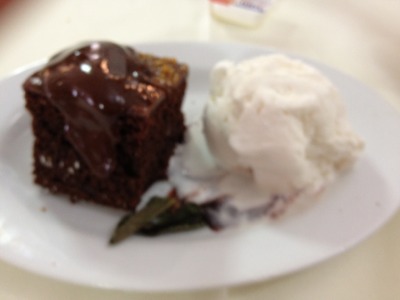 最後にデザート。お皿があっつい ~(^^;;のに、アイスクリームとチョコケーキ‼
