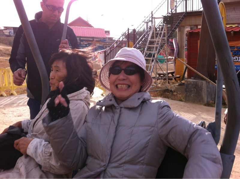 リフトで登頂。 沢口さん、森さん。