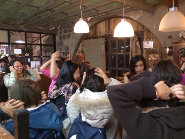 次はヘアクリーム! いっぱいお試しできて、みなさんオリーブたっぷり塗ってます! ベトベトにならないように気をつけてくださいね〜!(笑)
