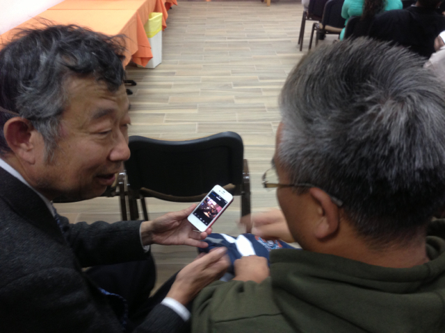 牧師賛美コーラスに立つ二人! 賛美の確認中です!