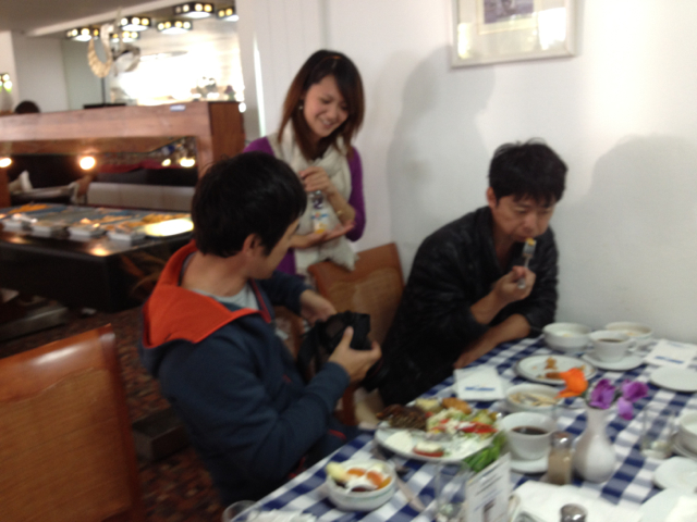 ブロガーの吉野さん。あっ、ご主人の目が2枚とも…( ̄◇ ̄;) 映像、ブログのため今日も皆様のおとりなし、よろしくお願いします。