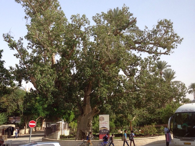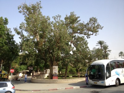ザアカイが登った木…だそうです。私も登っちゃおうかな?皆さん、バスで待っとって!