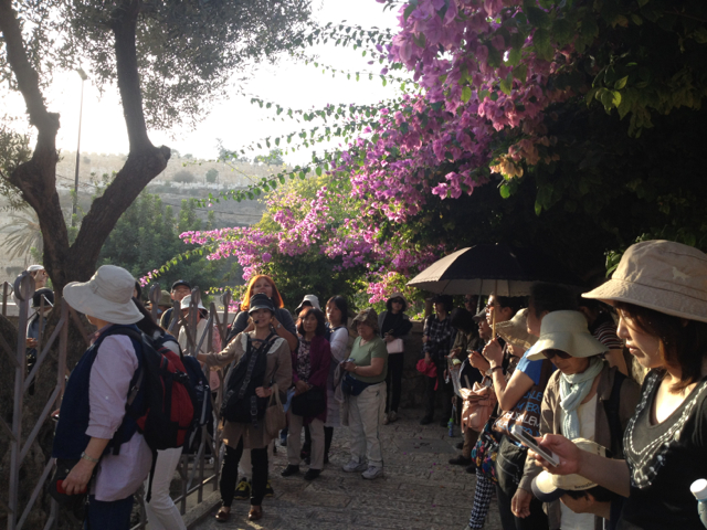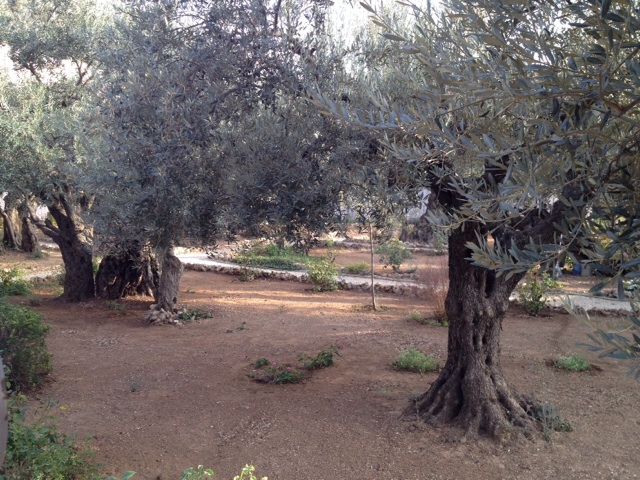 オリーブの木がたくさんあります。イエスさまが祈られた場所です。