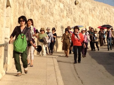 ガイドさん、傘は小さくてかわいい( i _ i )ツアーの旗がわりだそうです。
