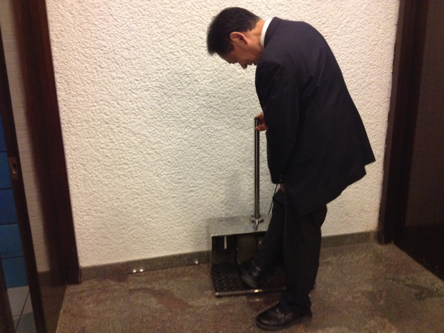 iPhoneをチェックしていらっしゃるイザヤ牧師。