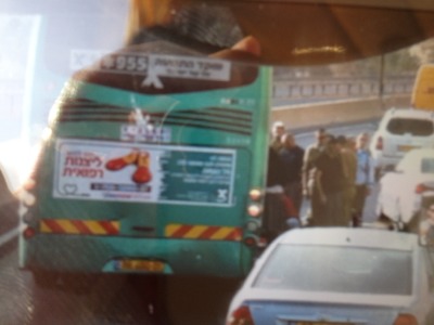 事故渋滞 このバスがとまってしまい、しばし渋滞でした。 バスの乗る辺りに人が倒れてたのです。