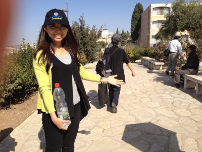オリーブ山で黙想の時をもちます。皆さん日影を探しています。