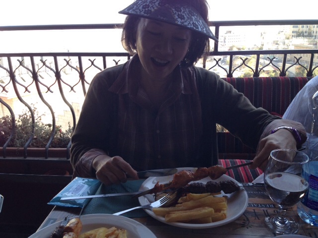 オリーブ山にて、また眺めのいいレストランで、ランチをしています。