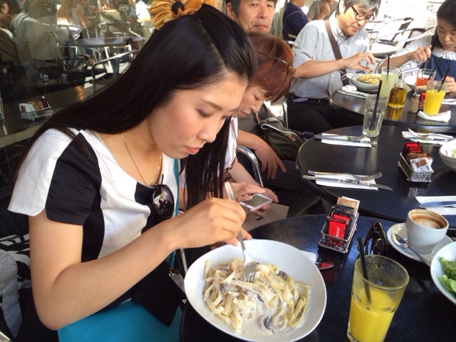 ランチから帰ってきたブロガーあんちゃん達。ひたすらアップするあんちゃん。指先が怖いくらい動いとる(≧∇≦)