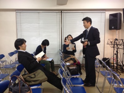 テモテ牧師去る後、後の2人はたちあがりません。佐藤Pがやってきました。