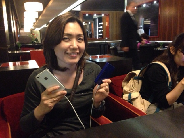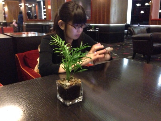 ロビーで真剣なナオミ牧師 ランチの写真をアップo(^_-)O