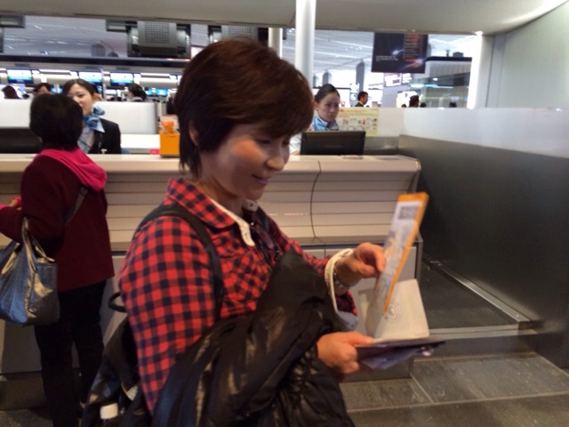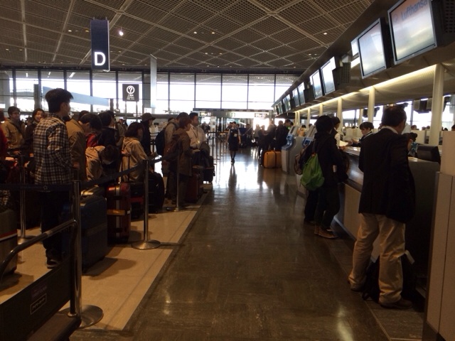 無事チェックインしました。 皆さんの手続きを待ちます。