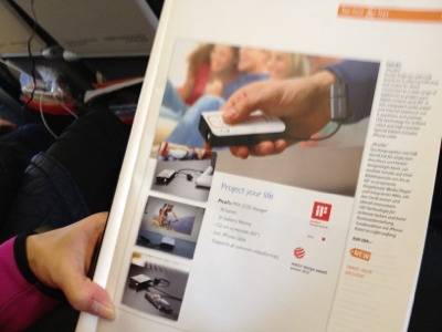 機内にある雑誌で、プロジェクター手の平サイズ日本円で3万円位(USB付き)を、チャチちゃんが見つけました。あったら持ち運びに便利ですね。