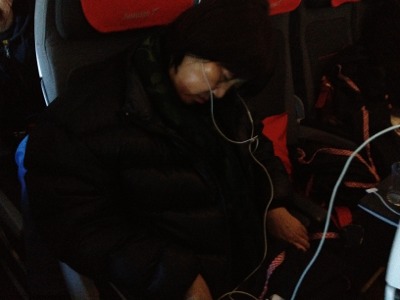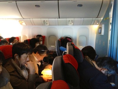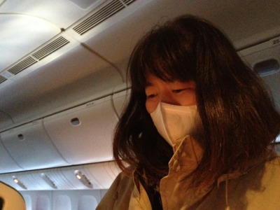 こちらは機内での加藤牧師です。またまた機内でも、iPhoneお世話になってます。