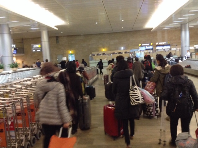 岡本京子さん、テルアビブに到着した様子を撮影しています。