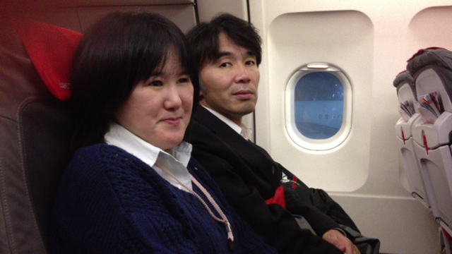 ほぼ満席にもかかわらず、全員通路側がとれました。感謝します。 3人がけ、3人がけ、中央に通路のこぶりな飛行機です。