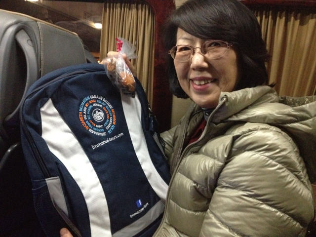 インマヌエル・ツアーからのプレゼント、リュックとウエルカム・フルーツとお水をいただきました。