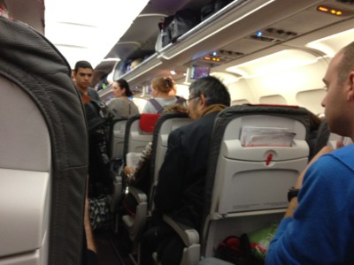 パウロ秋元牧師御夫妻は2つ前に。この飛行機も満席状態です。