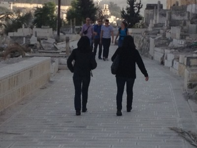 遠くにみえる、オリーブ山のセブンアーチーズホテルは、塗り替えがなされたそうです。(以前チームが宿泊していたホテル)