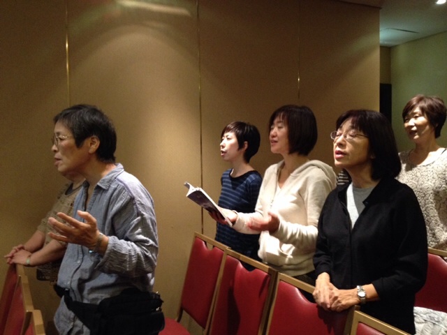 聖会が始まる前に、加藤牧師から明日のアナウンスがなされています!