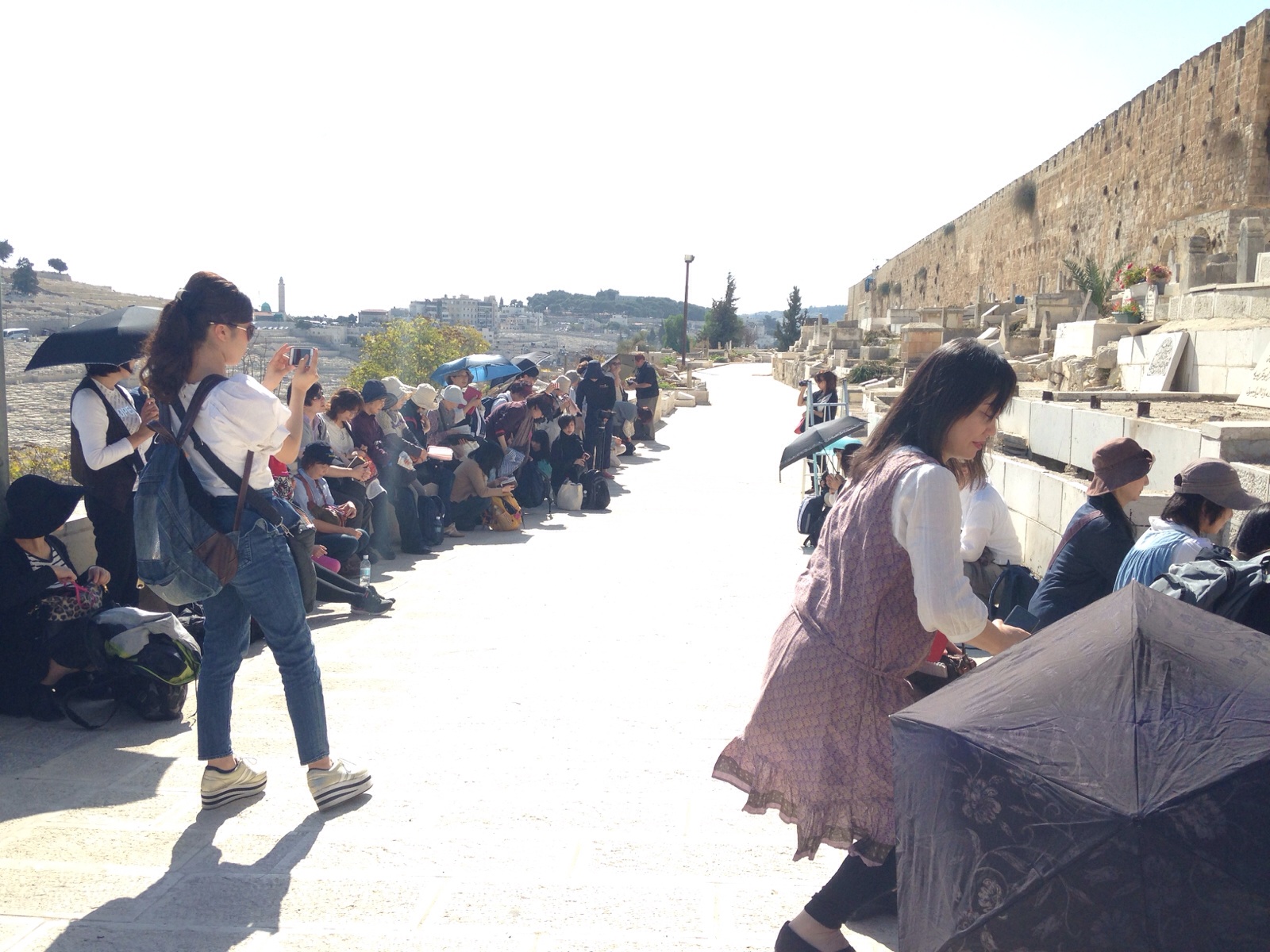 黄金門に向かって祈る人達 オリーブ山に向かって祈る