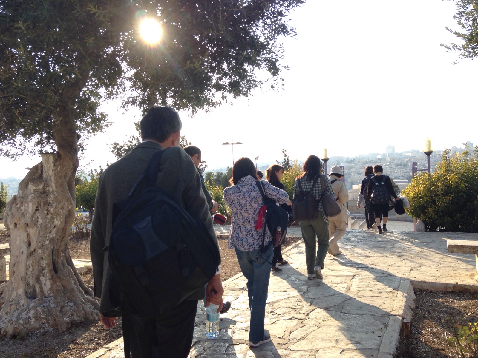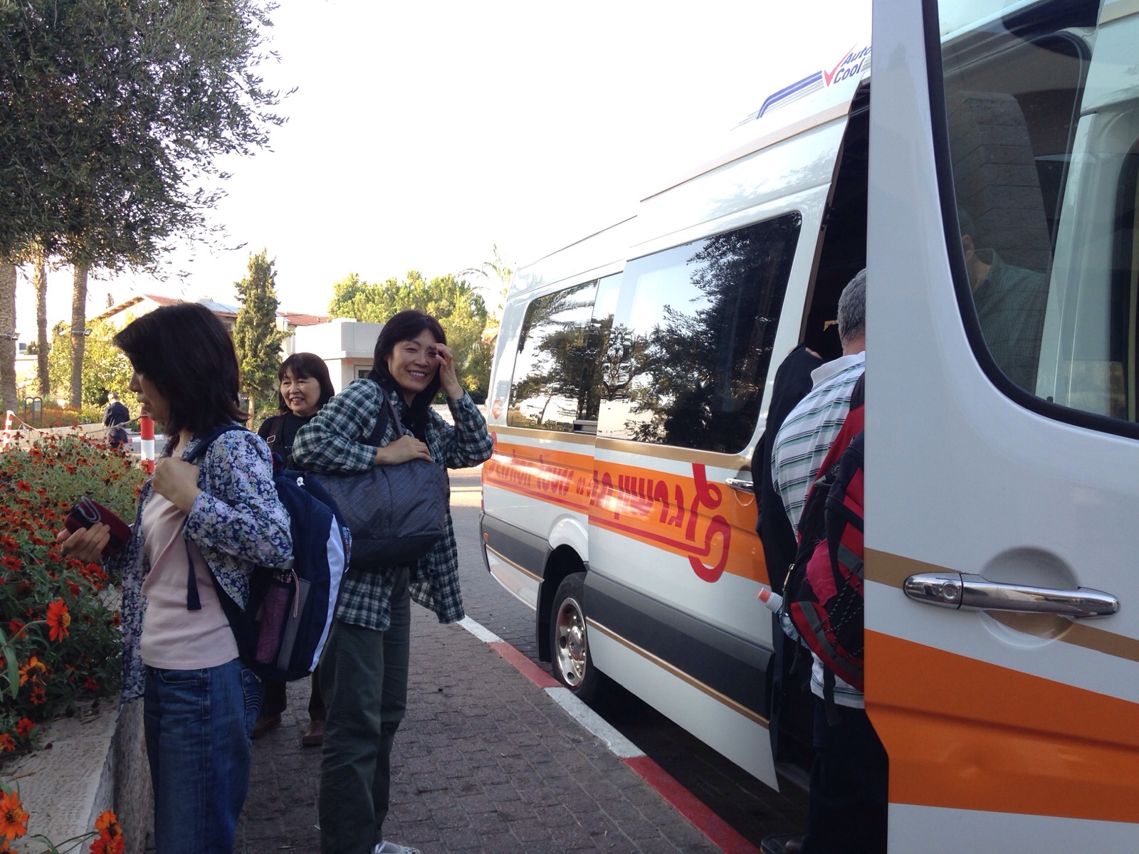 Tour group bus came to Mt. Olive. We are shaking our hands each other.