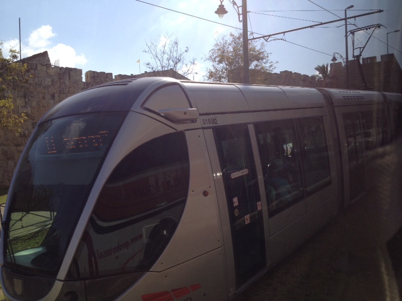 エルサレムの路面電車。 長くて早くて道路ギリギリ。