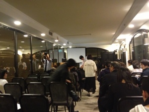 今日の聖会場所は、昨日より大きなお部屋で、 縦長のお部屋です。