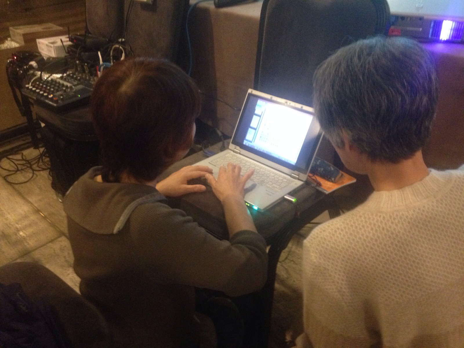 今日は、うまくいきますように! プロジェクター係のハンナさん。