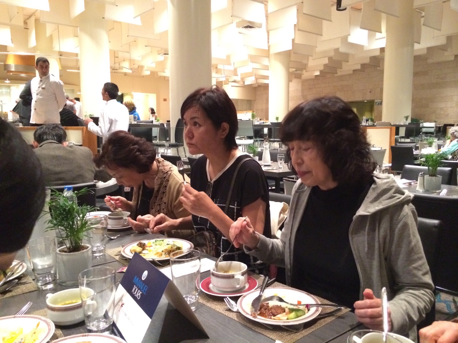 今日の夕食です。 みなさんモクモクと食べてます。 明日からロンビーチホテルの食事になります!