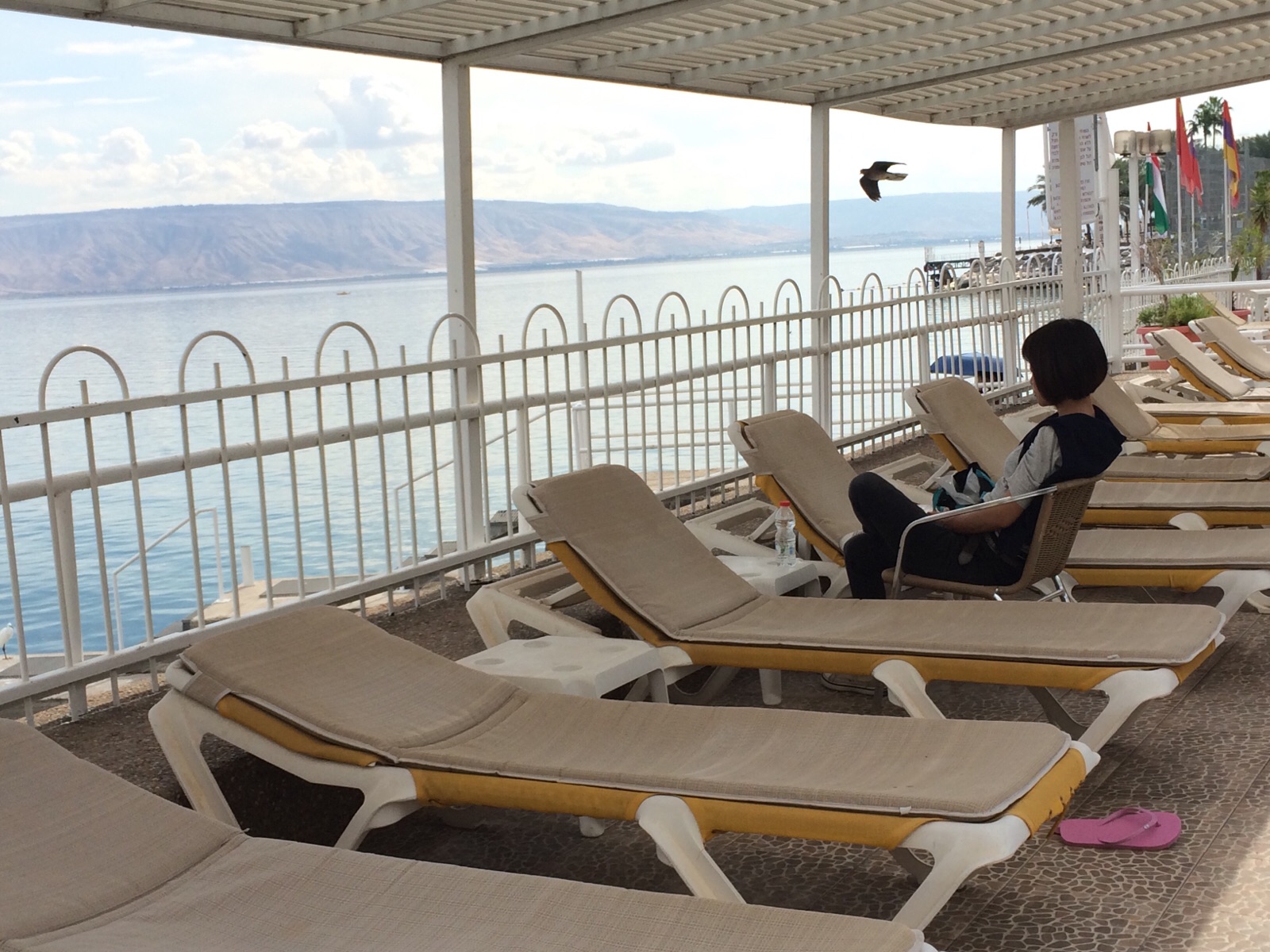 ガイドのケレンさんが説明をして下さっています。 「私達はガリラヤ湖をseaともよんでいます。」
