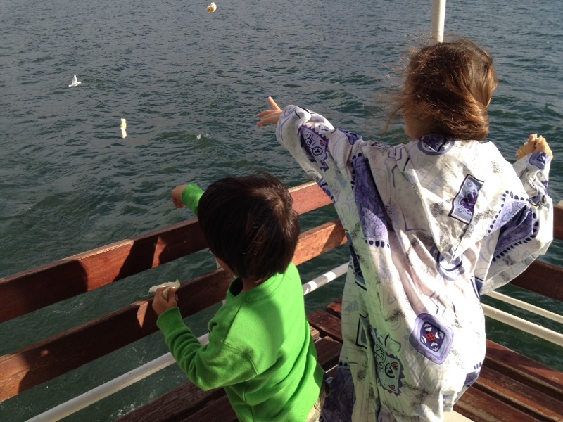 カモメちゃ〜ん、食べてね〜。 子供たちは、大喜び。