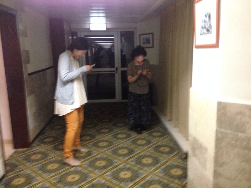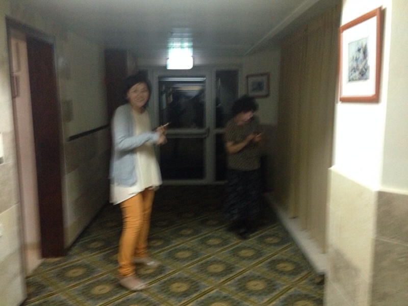 部屋に向かうと、薄暗がりに、何やらたたずむお二人。