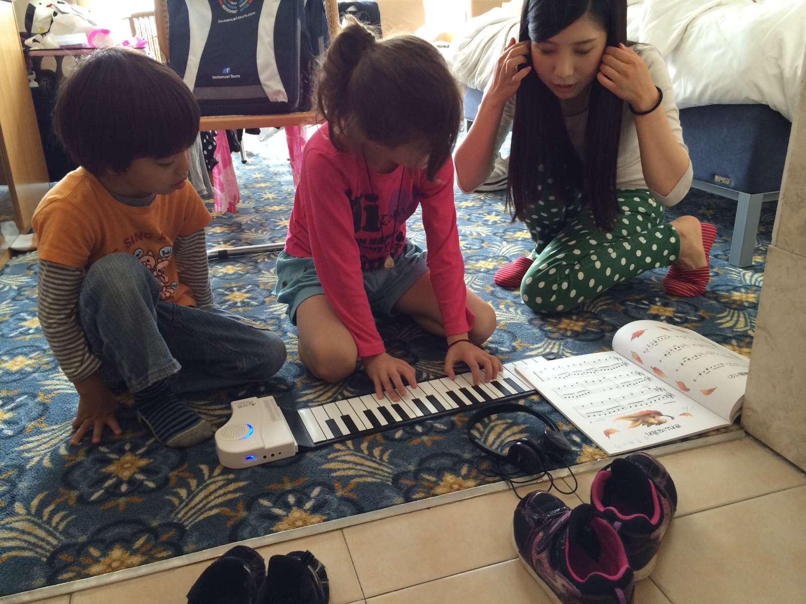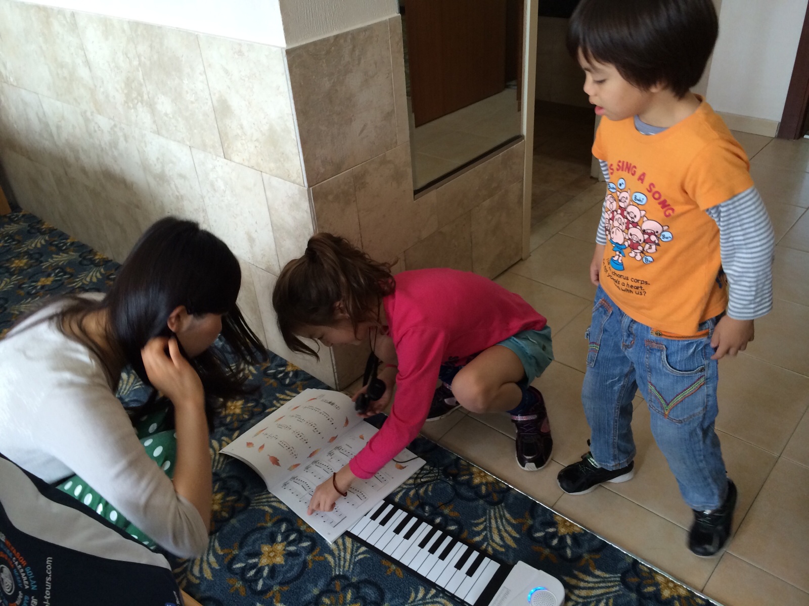 Esther-chan came to our room and she said “Erisa-chan, please tell me how to play the piano!”(^^)