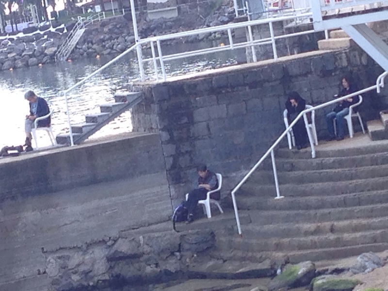 こんな所に渕野さんがいました! ガリラヤ湖の水しぶきが当たりそう(^^)