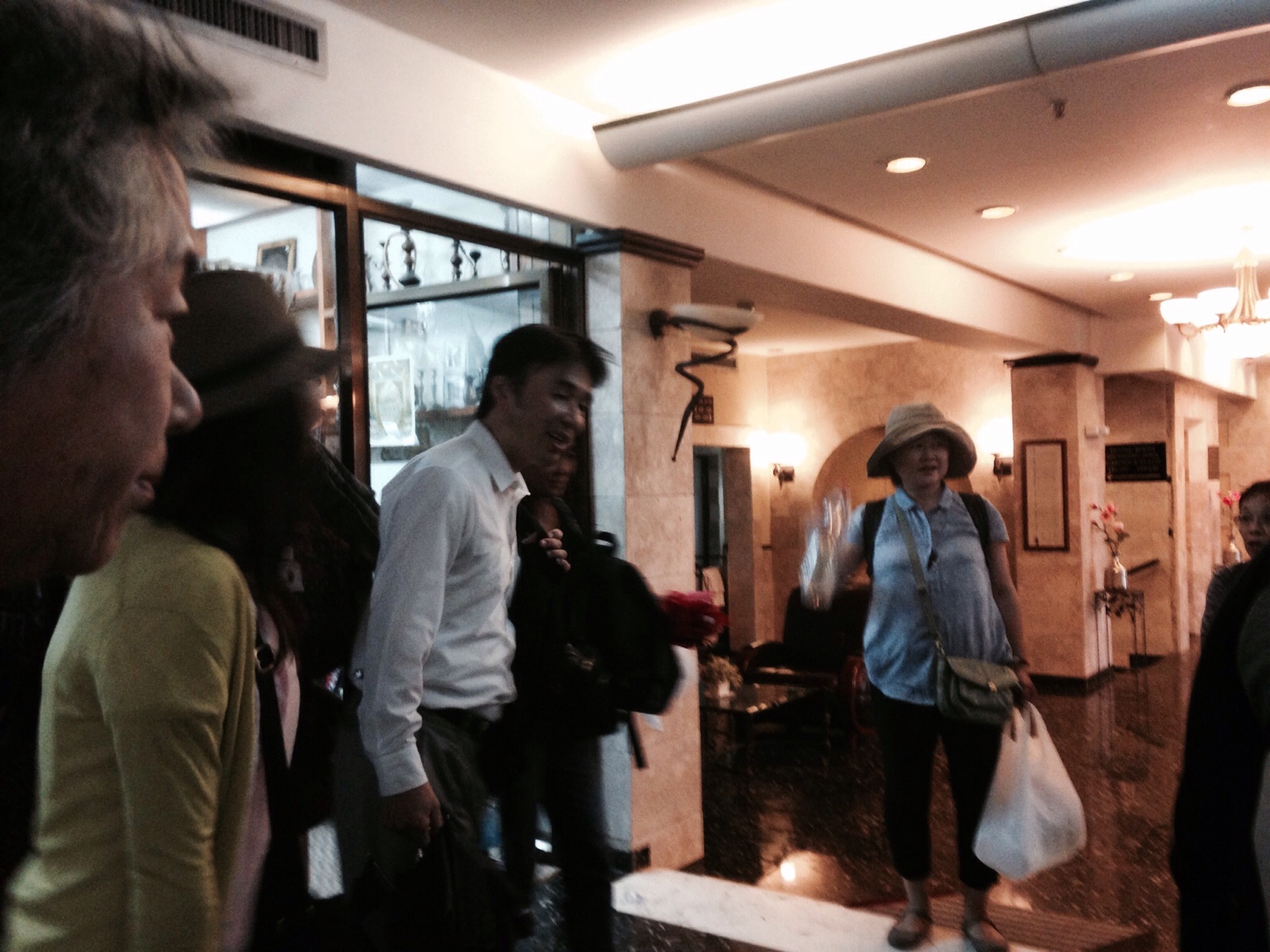 ホテル近くで、再び雨。皆さん駆け足で、無事ホテルに到着しました。