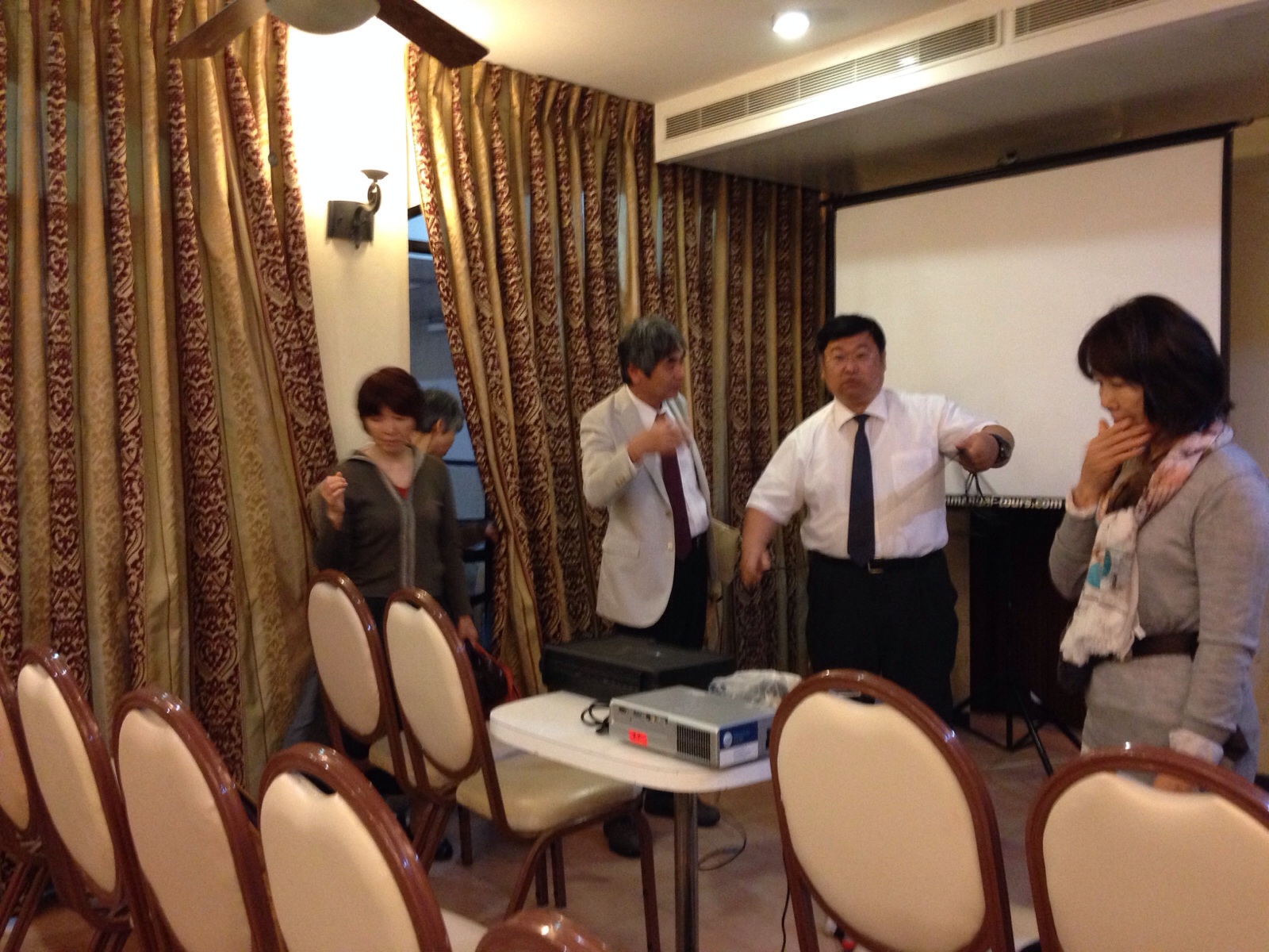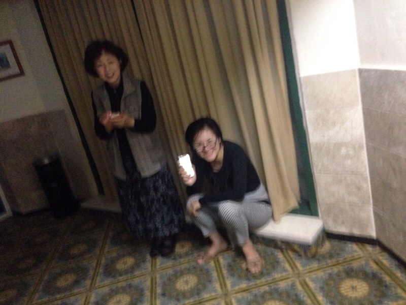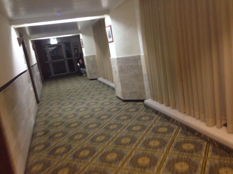 薄暗がりに、なんかおる?と思いましたら、昨夜のお二人様。今日もWi-Fi環境の良い廊下に現る。ベッドはまだ運んでないみたい。(笑)