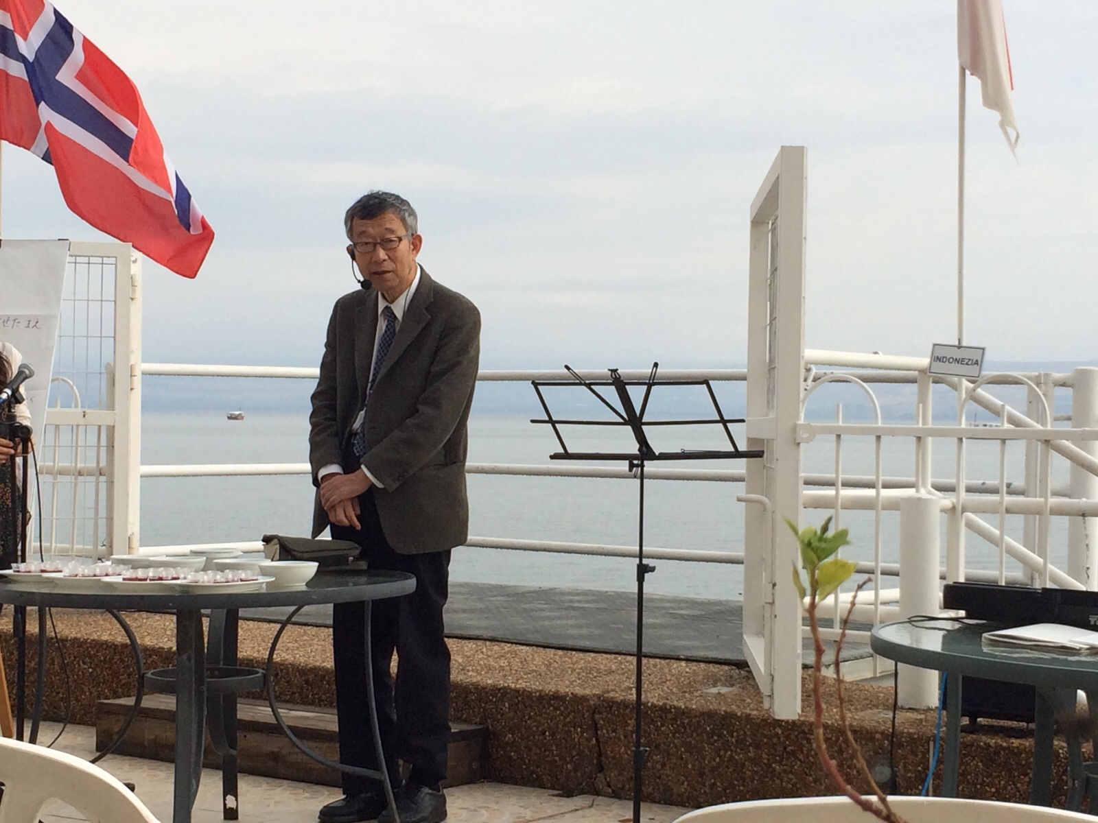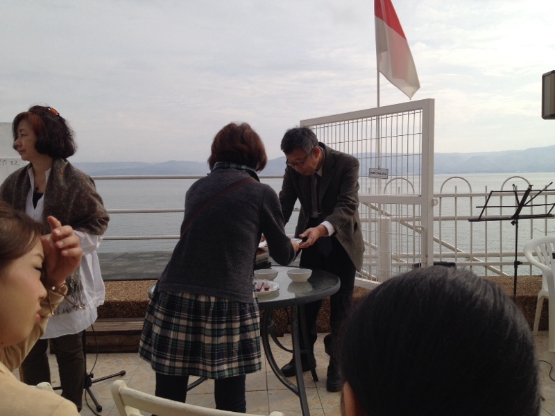 Prayer of thanksgiving for offering is given to the Lord through Kobayashi-san