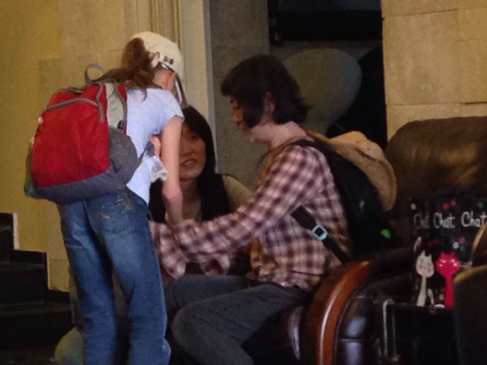 出発前のロビー。 ノエミちゃんも元気です。