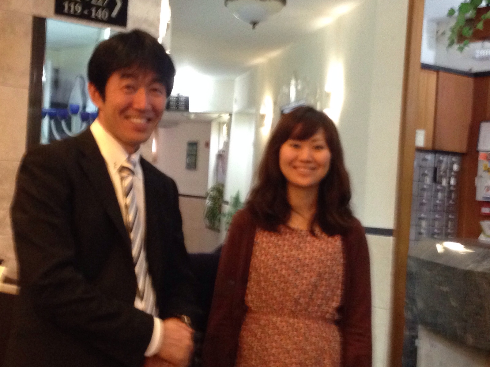 At lobby before departure. Noemi is in good condition.
