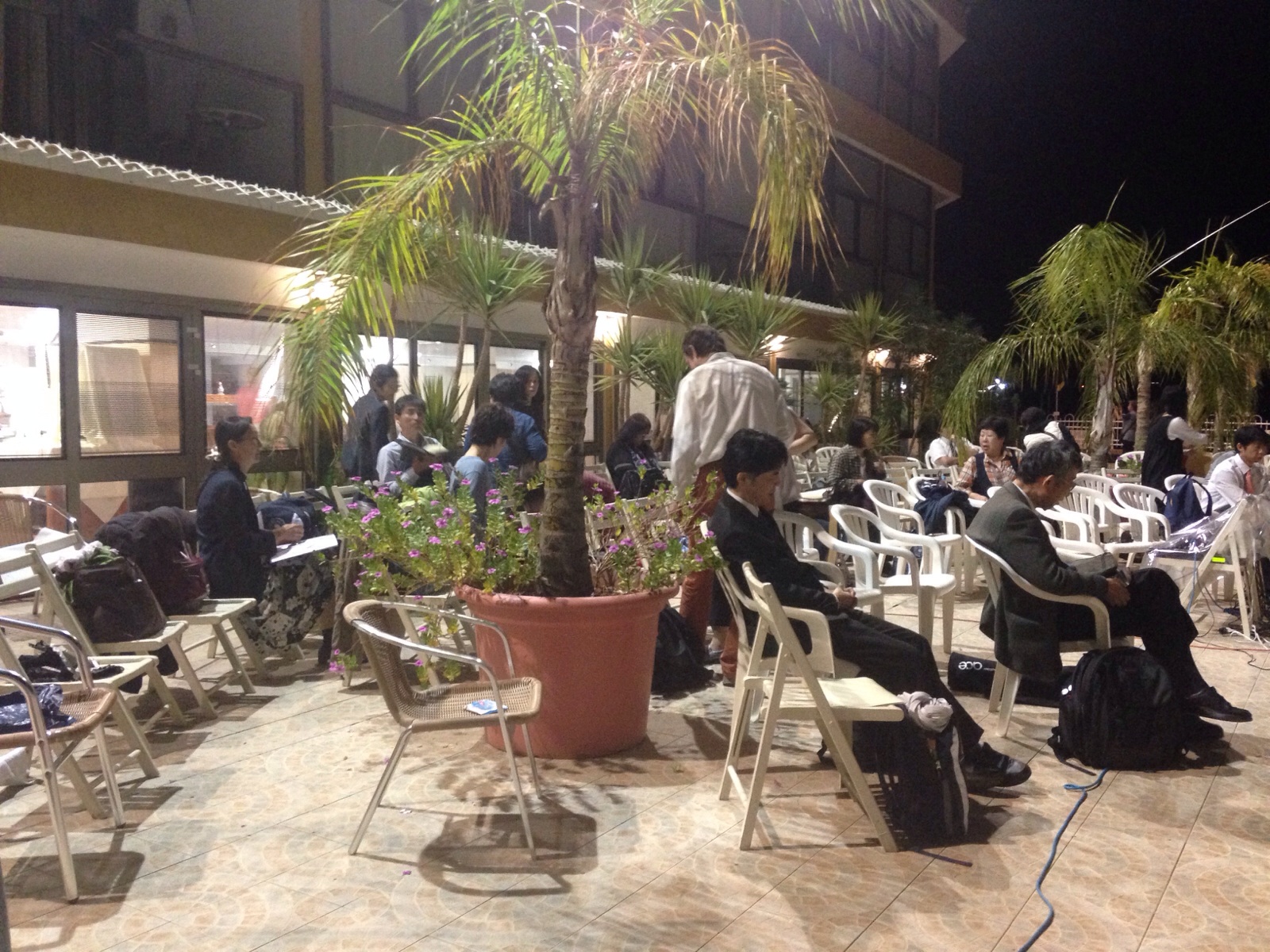 外で礼拝する準備してます!