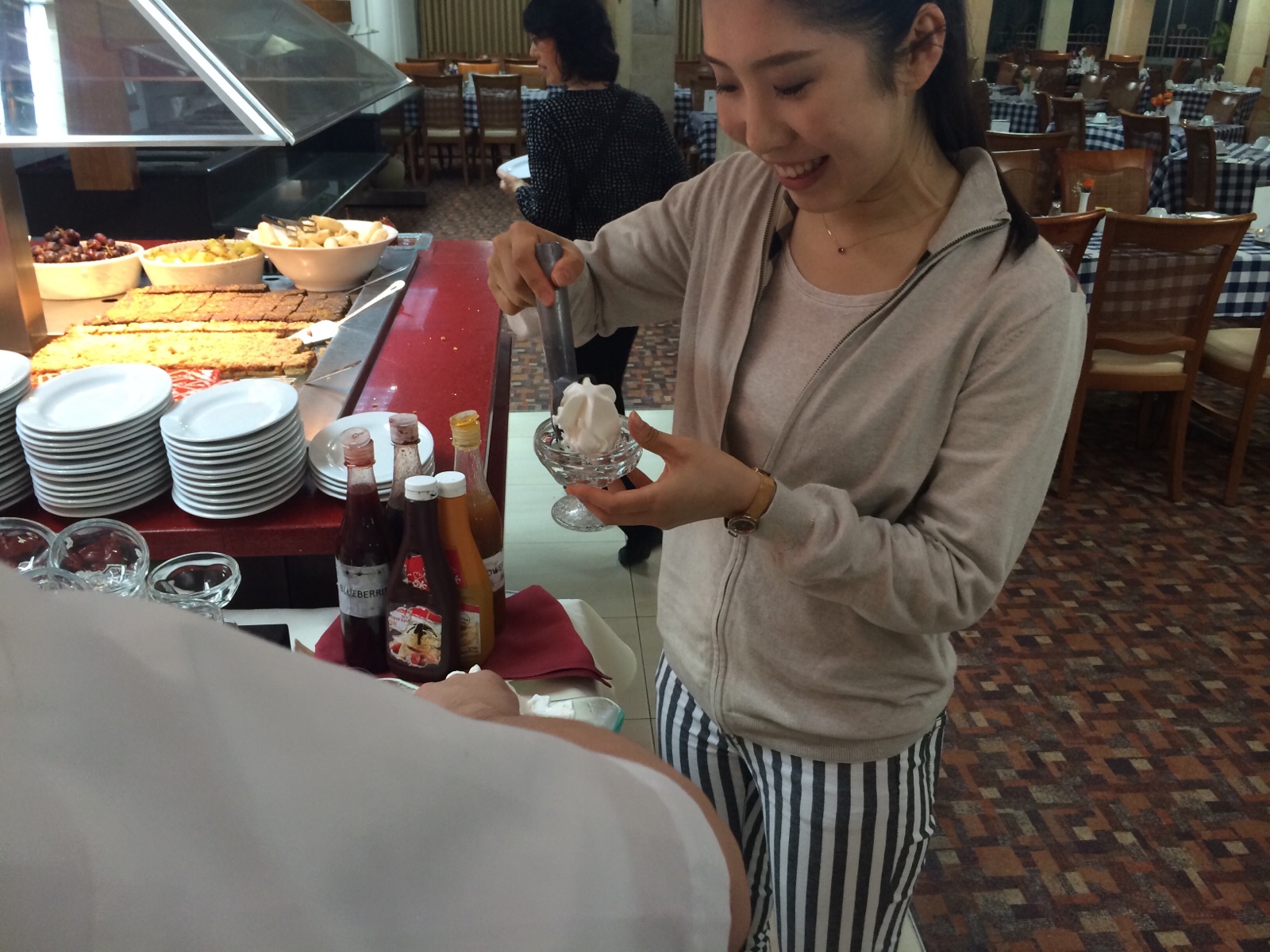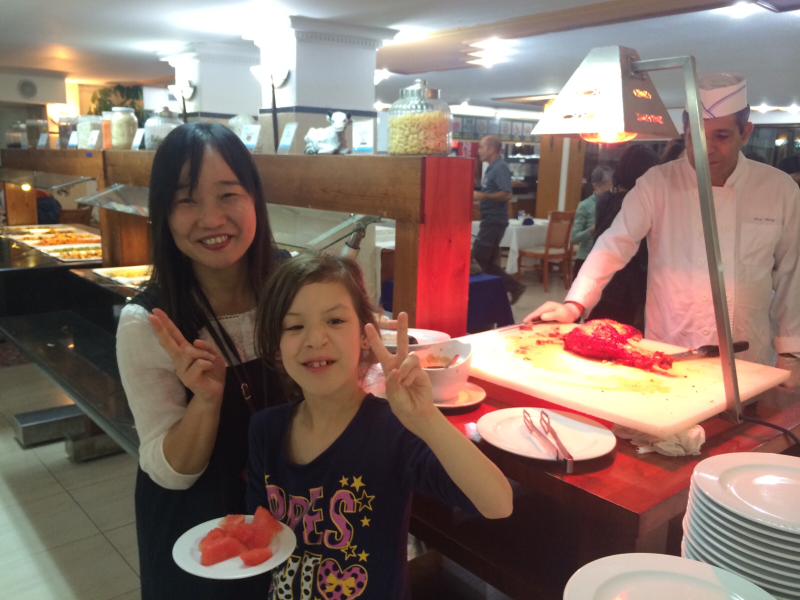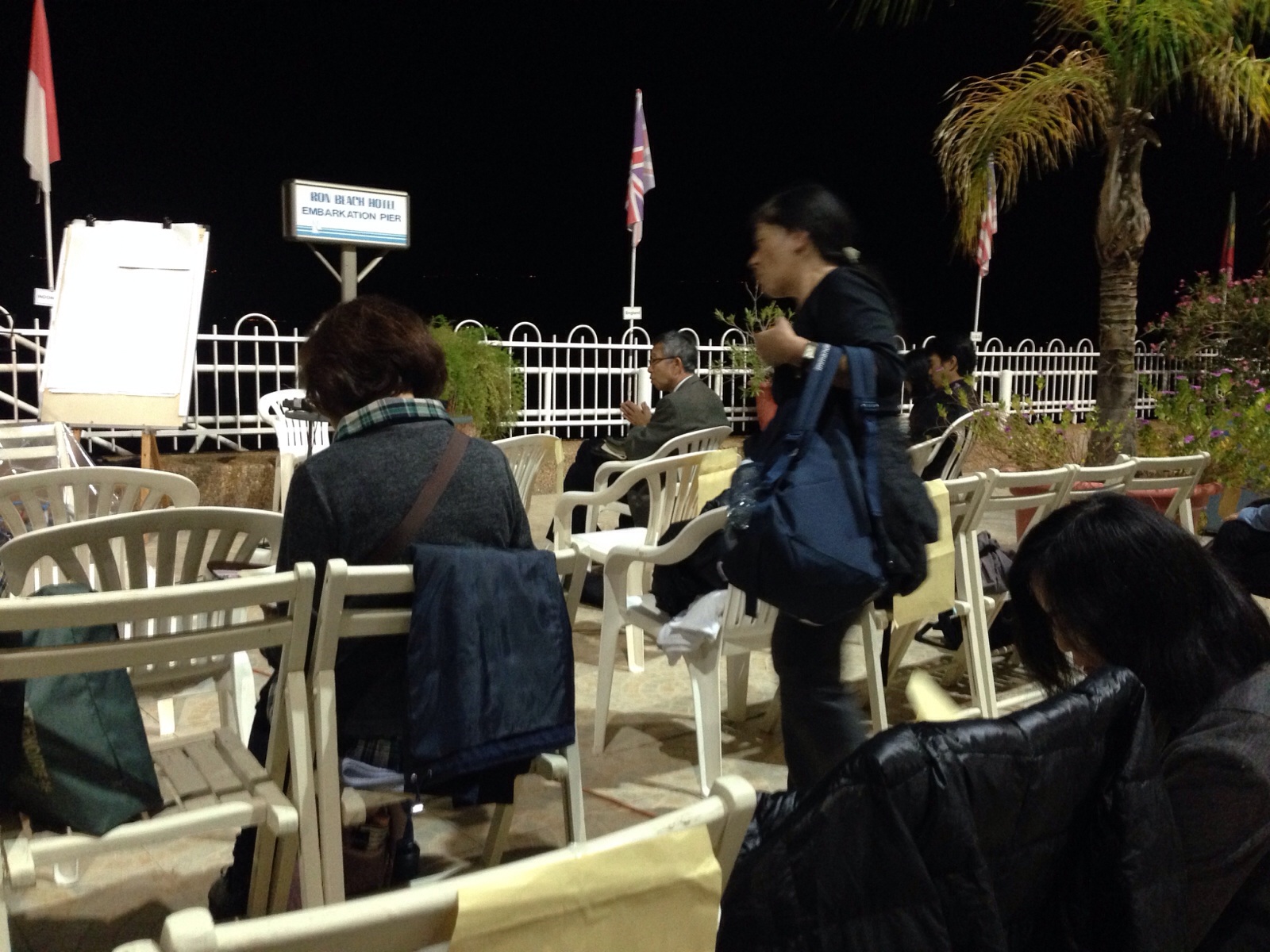 夜のガリラヤ湖をバックに決めポーズ(^^)v