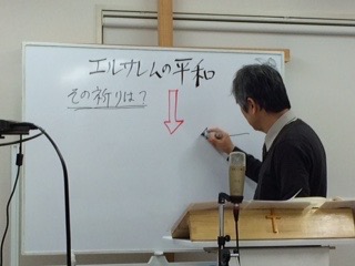イスラエルに派遣される直前の水曜礼拝で、エルサレムの平和を祈るメッセージが語られました。 船橋C