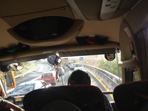 今日は事件があった様なので、安全を第一としてホテルへ向かいます。 既にそのチェックの為に渋滞になっています。