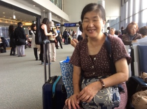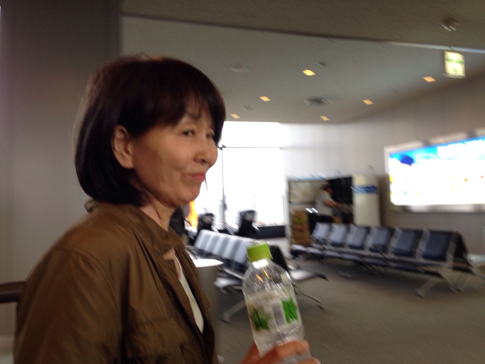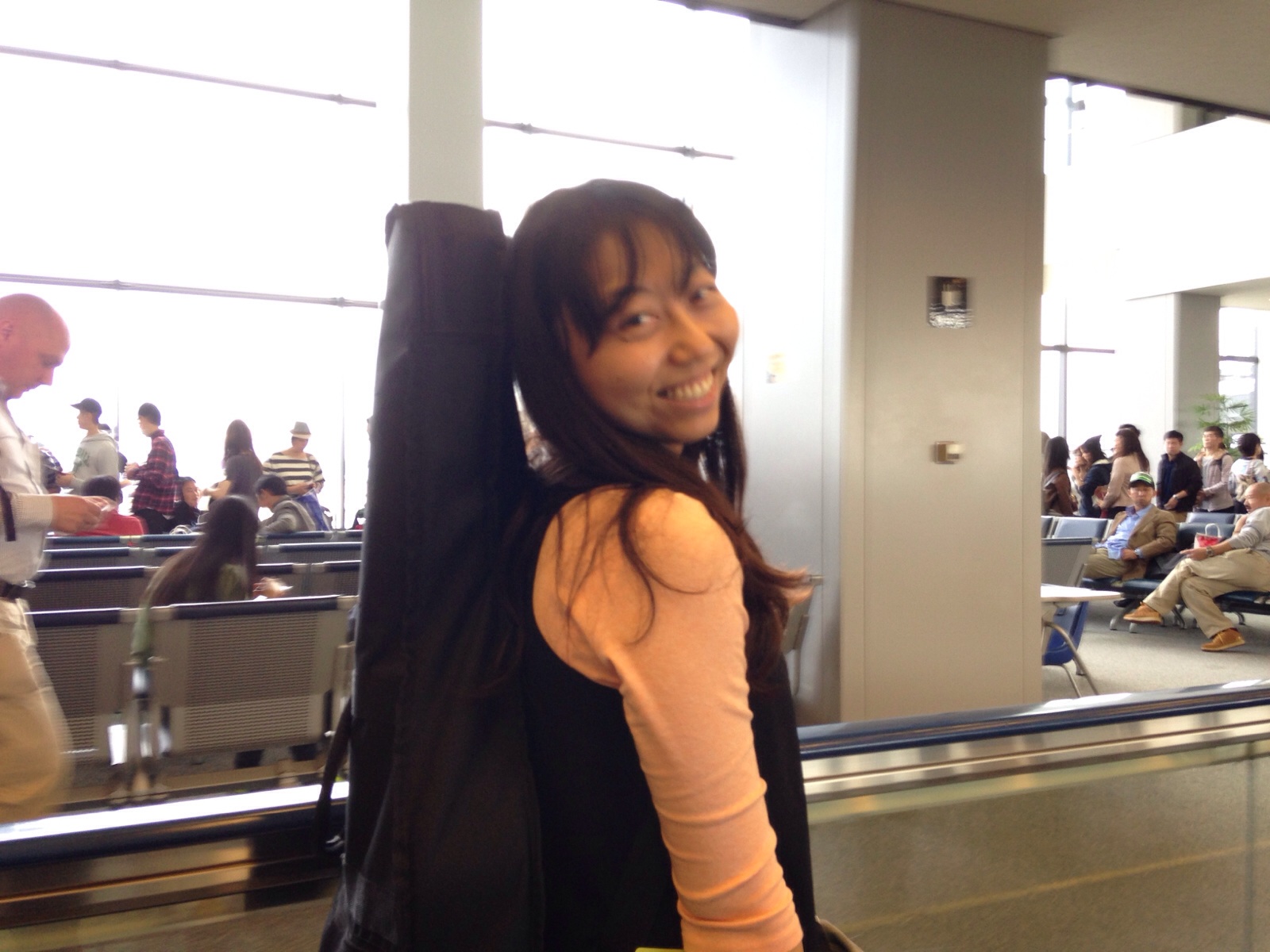 ギターを担いでます。私のじゃありませんよ〜と、輝美ちゃん。