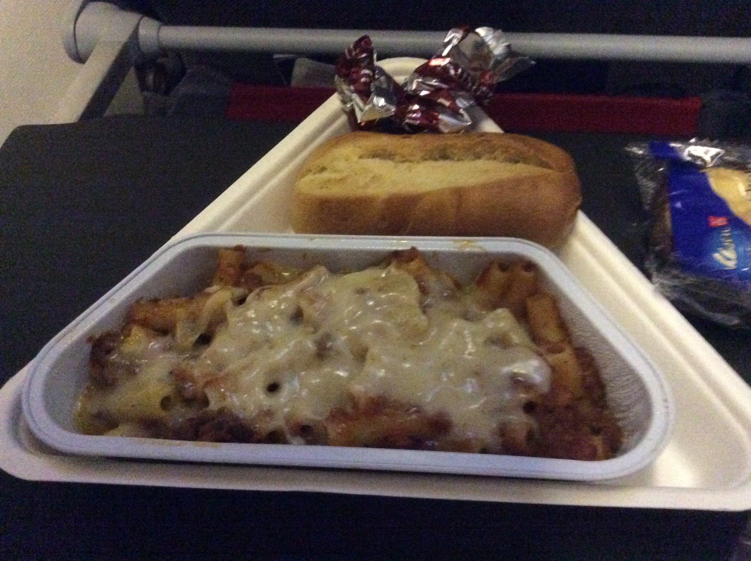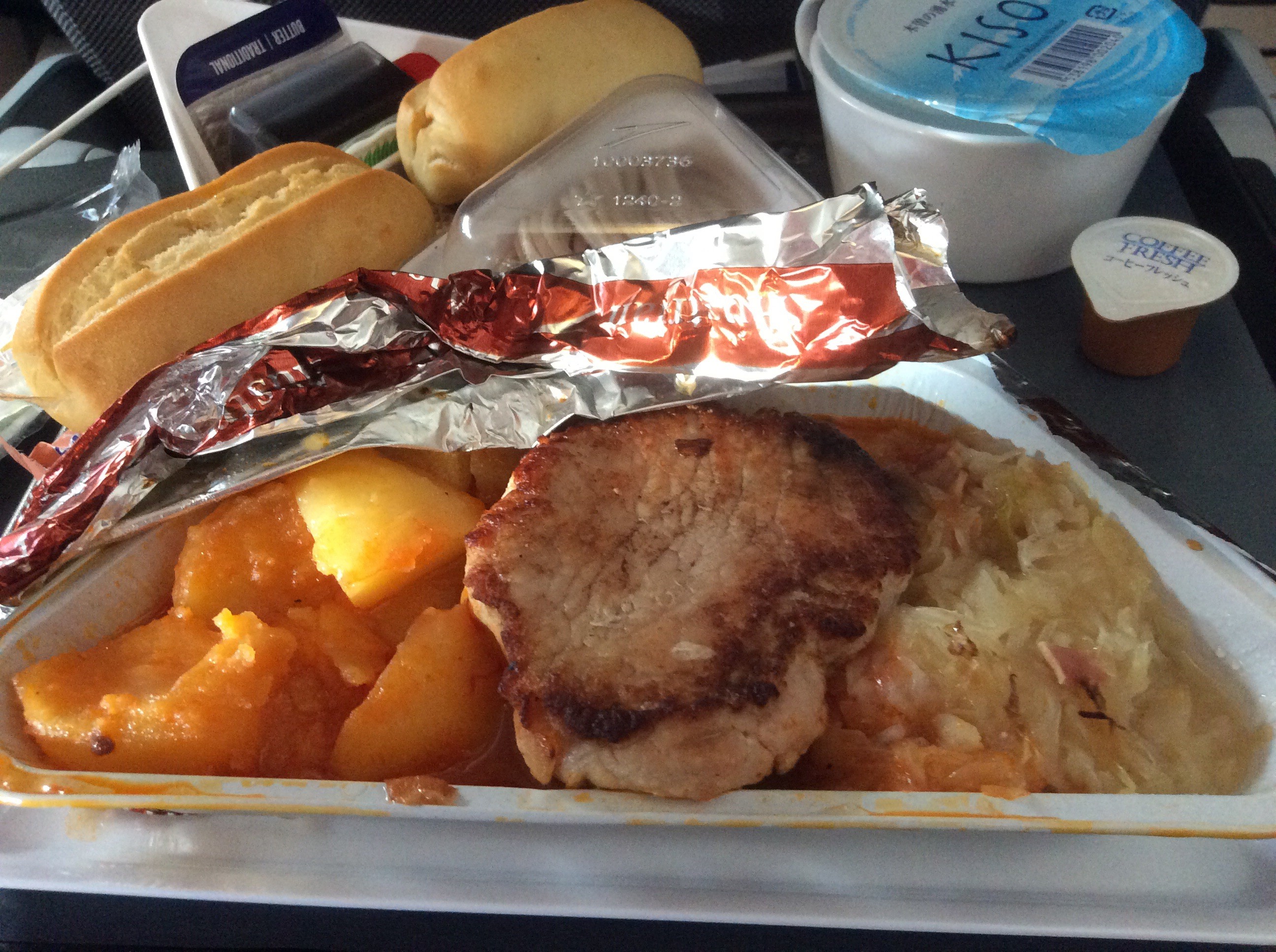 パスタか、ポーク 機内食のパン、 美味しかったです。
